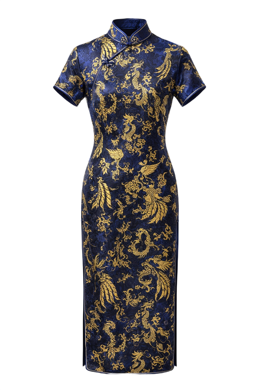 Royal Blue Synthetic Cheongsam