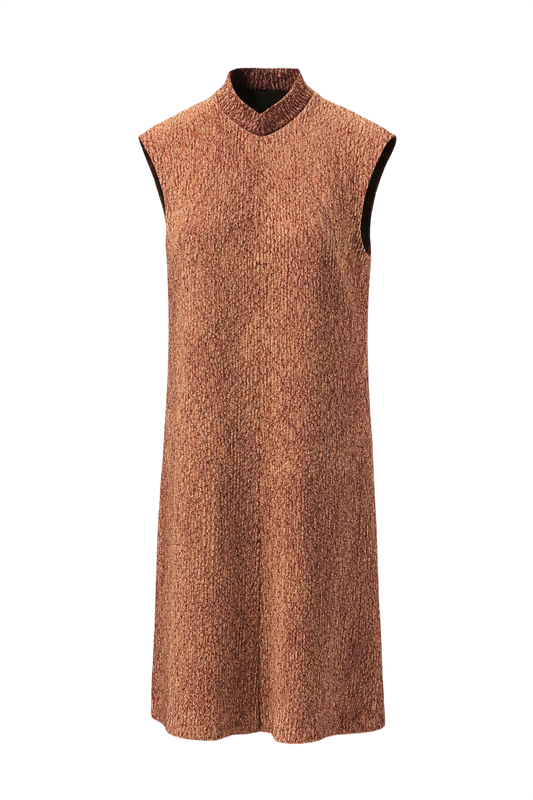 1970s Rust Red Textured Asian Dress