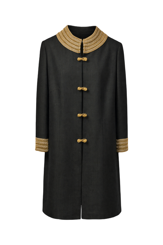 70s Embroidered Black Coat
