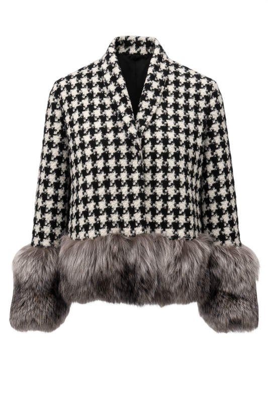 Sold out80s Power Suit80s Houndstooth Jacket with Fur