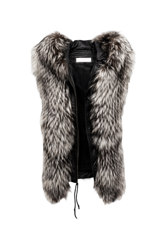 Sold out90s Supermodel90s Black Fox & Leather Vest