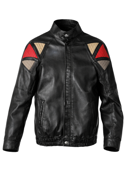 Black Leather Jacket w/ Geometric Patches