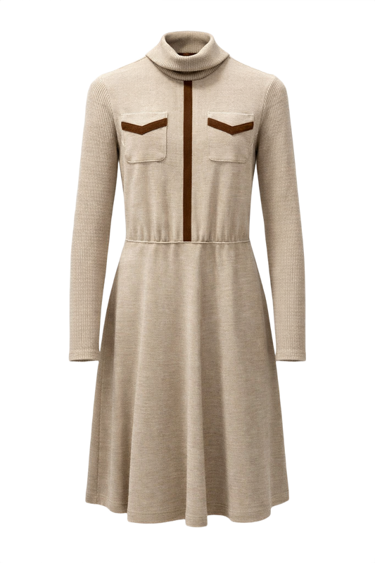 Beige Turtleneck Dress