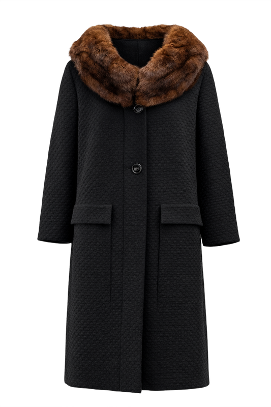 Black Textured Coat w/ Mink Collar