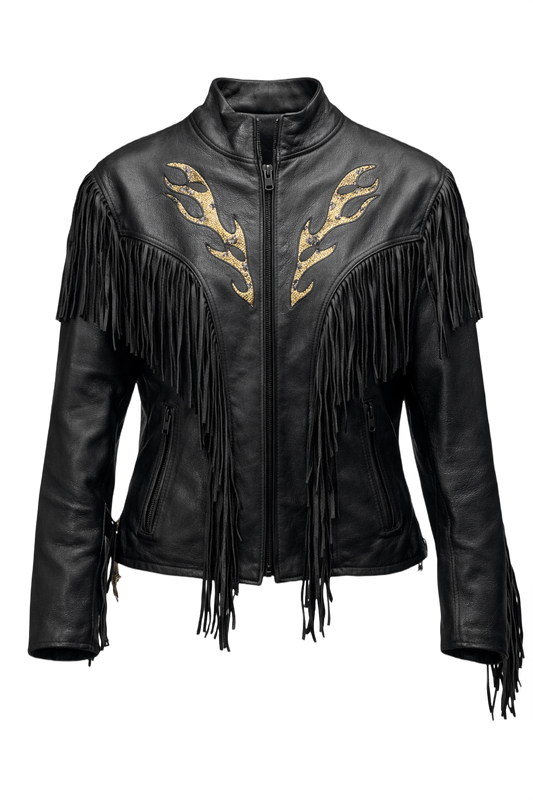 Black Leather Jacket w/ Snake Embellishments
