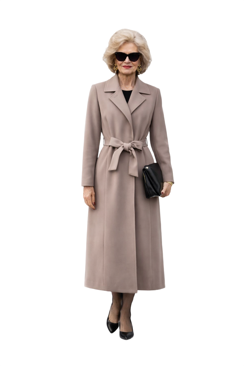 Elevate your wardrobe with this stunning 1980s taupe trench coat. Featuring a minimalist design and a belted waist, this calf-length outerwear piece embodies the chic elegance of the era. Made from smooth polyester, it offers both style and comfort.