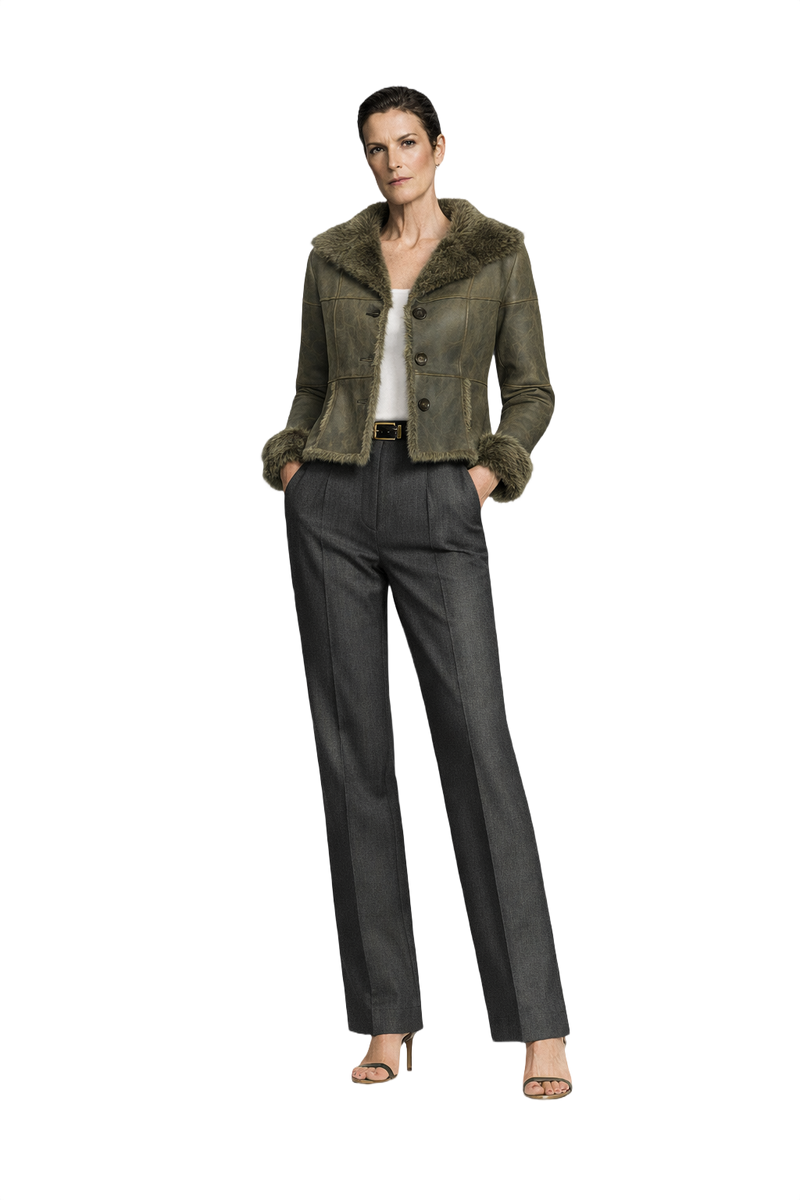 90s Olive Rabbit & Suede Jacket